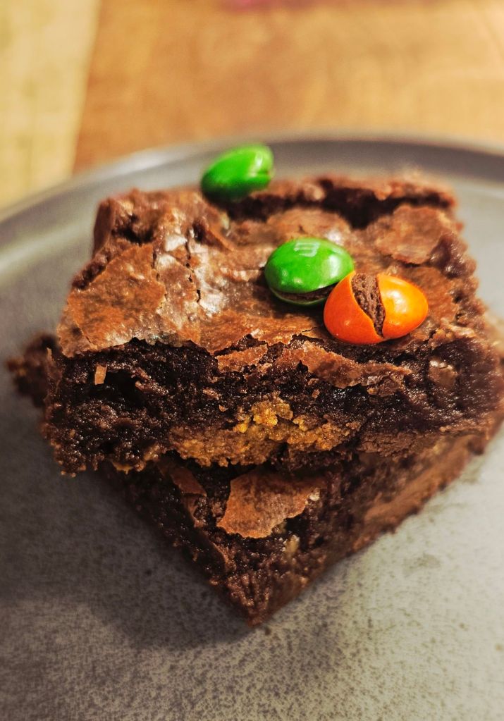Halloween Candy-Stuffed Brownies with Browned Butter