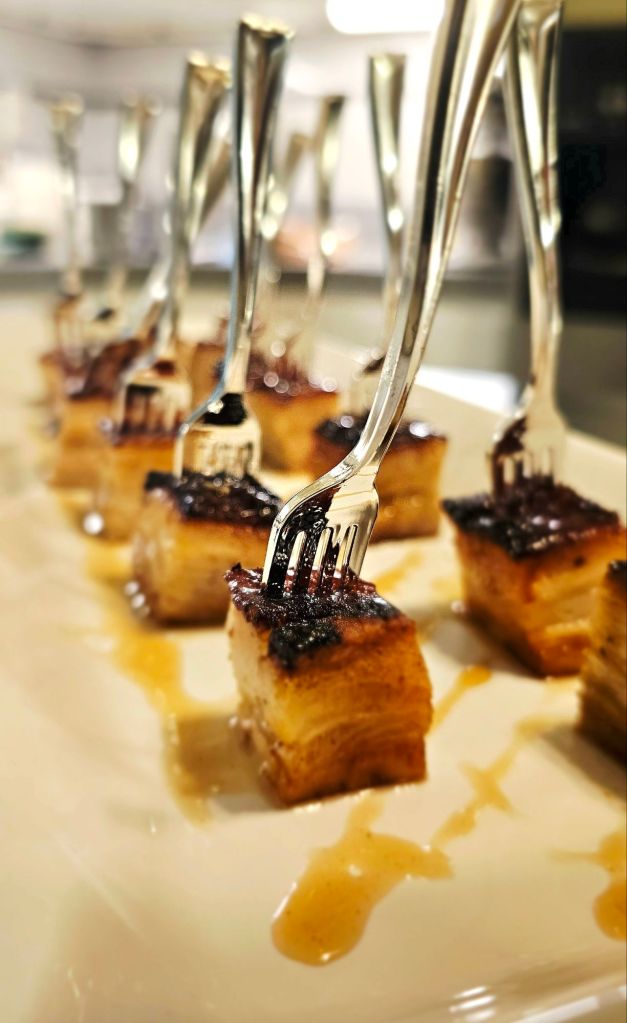 Service tip: For plated service, slice and finish with glaze tableside to preserve maximum crackle and aroma. A final grate of lemon zest over the meat brightens the fat and maple notes.
